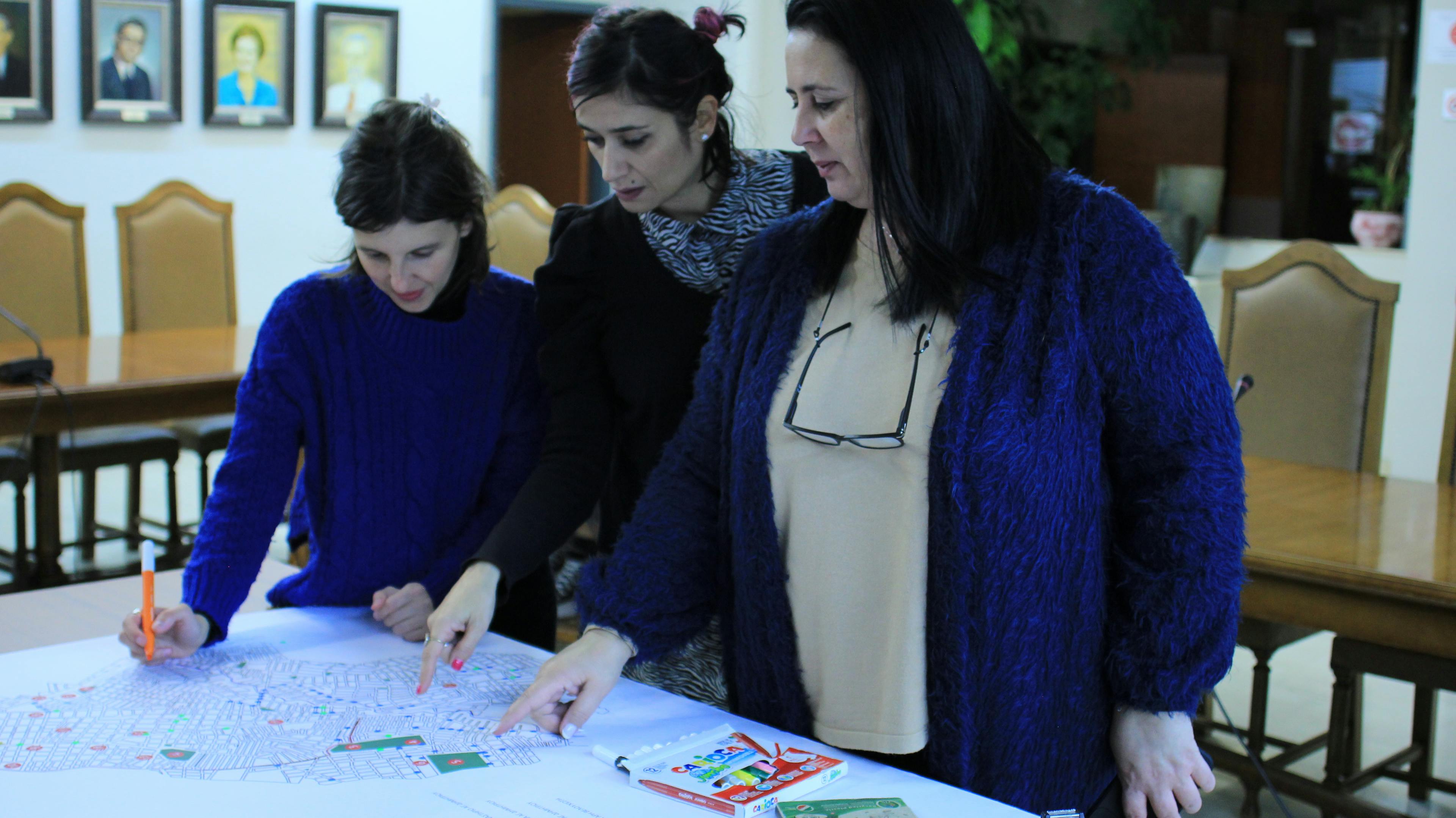 Throughout the action, we adapted our participatory mapping methodology to a gender perspective, drawing on participatory research approaches where participants take on the role of researchers. The process included three experiential workshops, during which participants became familiar with concepts and tools for evaluating public space through a gender lens, followed by two exploratory walks, one in the afternoon and one in the evening.